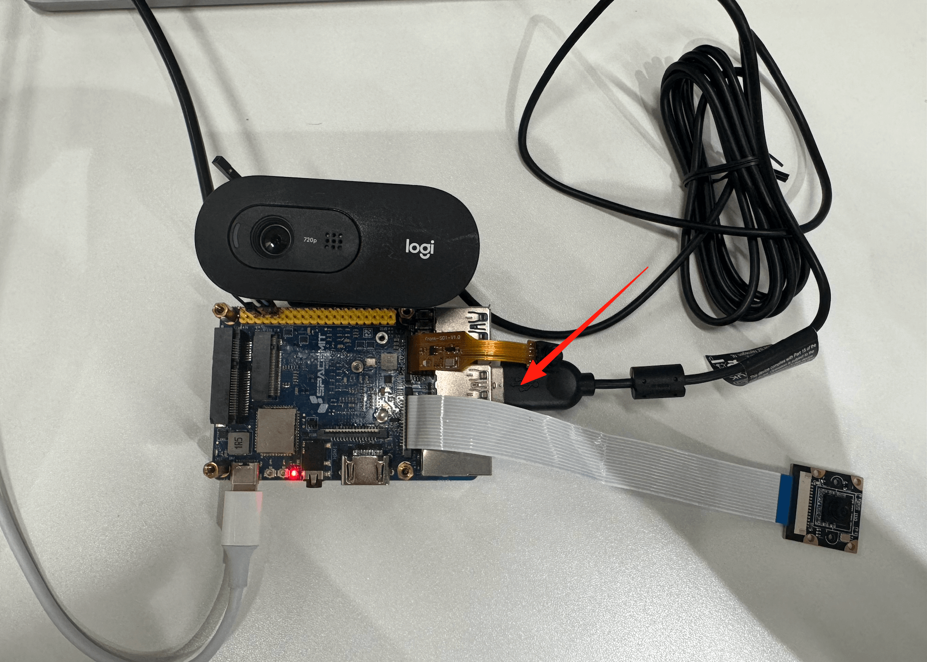 请将 USB 摄像头模组连接至开发板的 USB 接口,如下图所示: